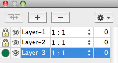 We have introduced a new layers palette allowing up to 5 layers, bringing Macdraft PE up to a more familiar standard for interfacing. This allows for easier manipulation of documents with multiple layers and now that the layers are constantly in view as a palette, it gives a continuous indication of what is showing in a document. You have complete control over the layers, allowing for them to be made Visible, Grayed or Invisible. You can also merge layers, which is now undoable.